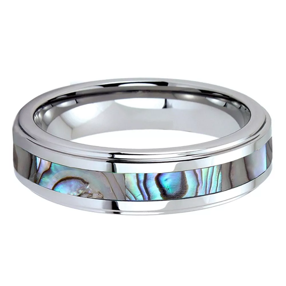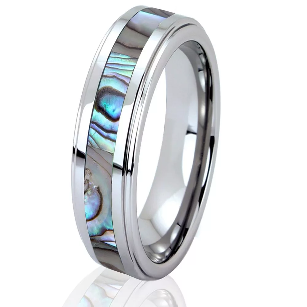 The Meravi tungsten and genuine abalone ring is truly a one-of-a-kind ring. The abalone shell is skillfully inlaid into the tungsten ring, creating a stunning chromatic effect. Due to the uniqueness and nature of abalone, each ring has its own unique pattern and no two rings are alike. The 6mm tungsten band also features an attractive step edge design, making this ring a true work of ark. Thanks to the durability and low maintenance of tungsten, you’ll find yourself wearing this ring every day – whether it’s for work or play. Why this ring? Beautifully crafted tungsten wedding band made of 100% genuine tungsten carbide. The inner band is designed with a slightly rounded interior for the most comfortable fit; add reliability and you’ve got a wedding ring that really delivers. Tungsten is the strongest metal used in modern jewelry. All of our Tungsten Wedding Bands have a hardness of 9 Mohs, with diamonds rating at 10 Mohs, making our tungsten wedding rings ten times harder than gold, with the highest melting point of all metals. Our exclusive designs, combined with high performance materials, bring the perfect balance of durability, comfort, and fashion.