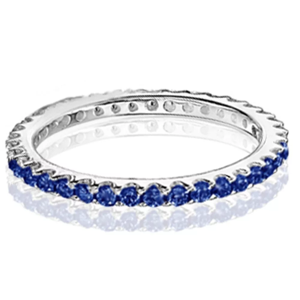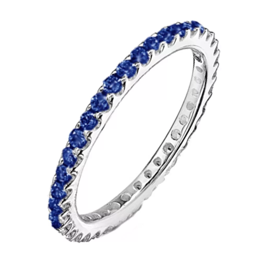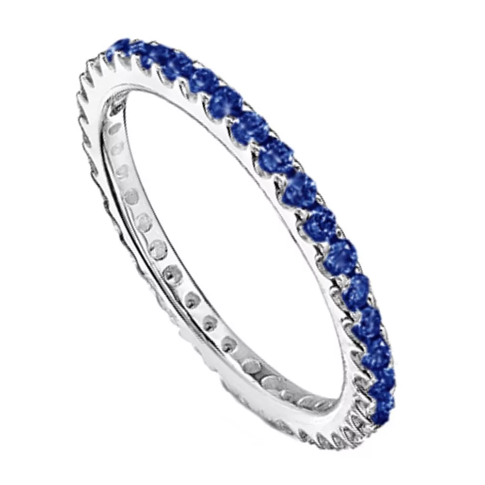 This ring is a great way to make a statement. Wear it alone or together with other jewelry for an eclectic look. The ring is made out of 925 Sterling Silver and surrounded with prong set blue cz stones. The artfully crafted eternity band is 2mm wide and is both fun and feminine, just like her.