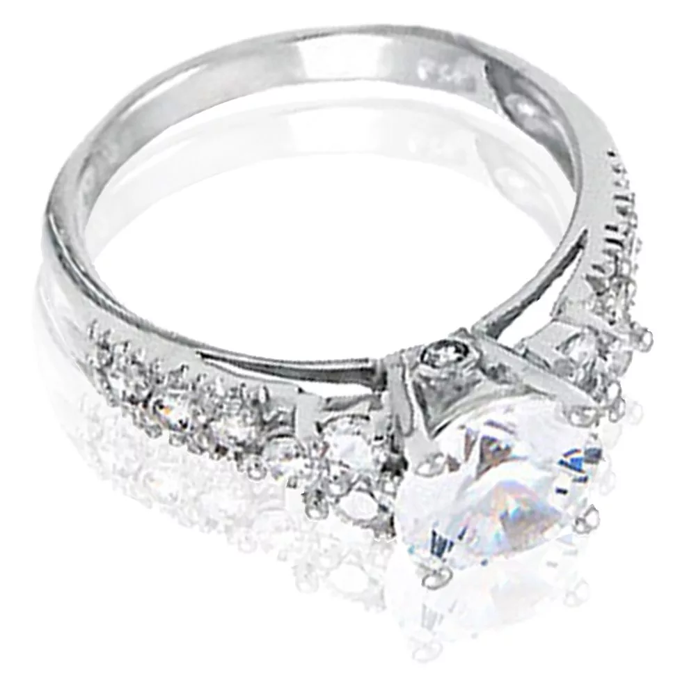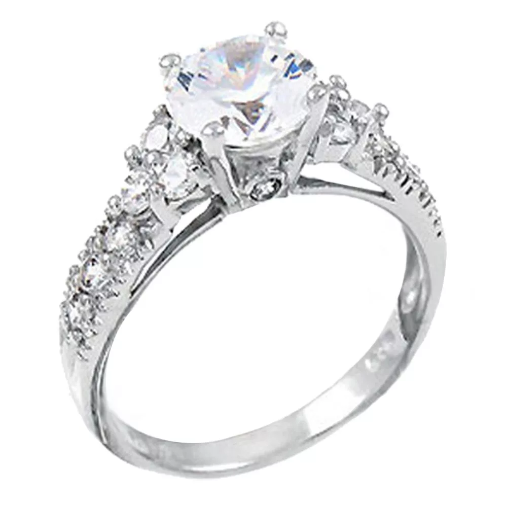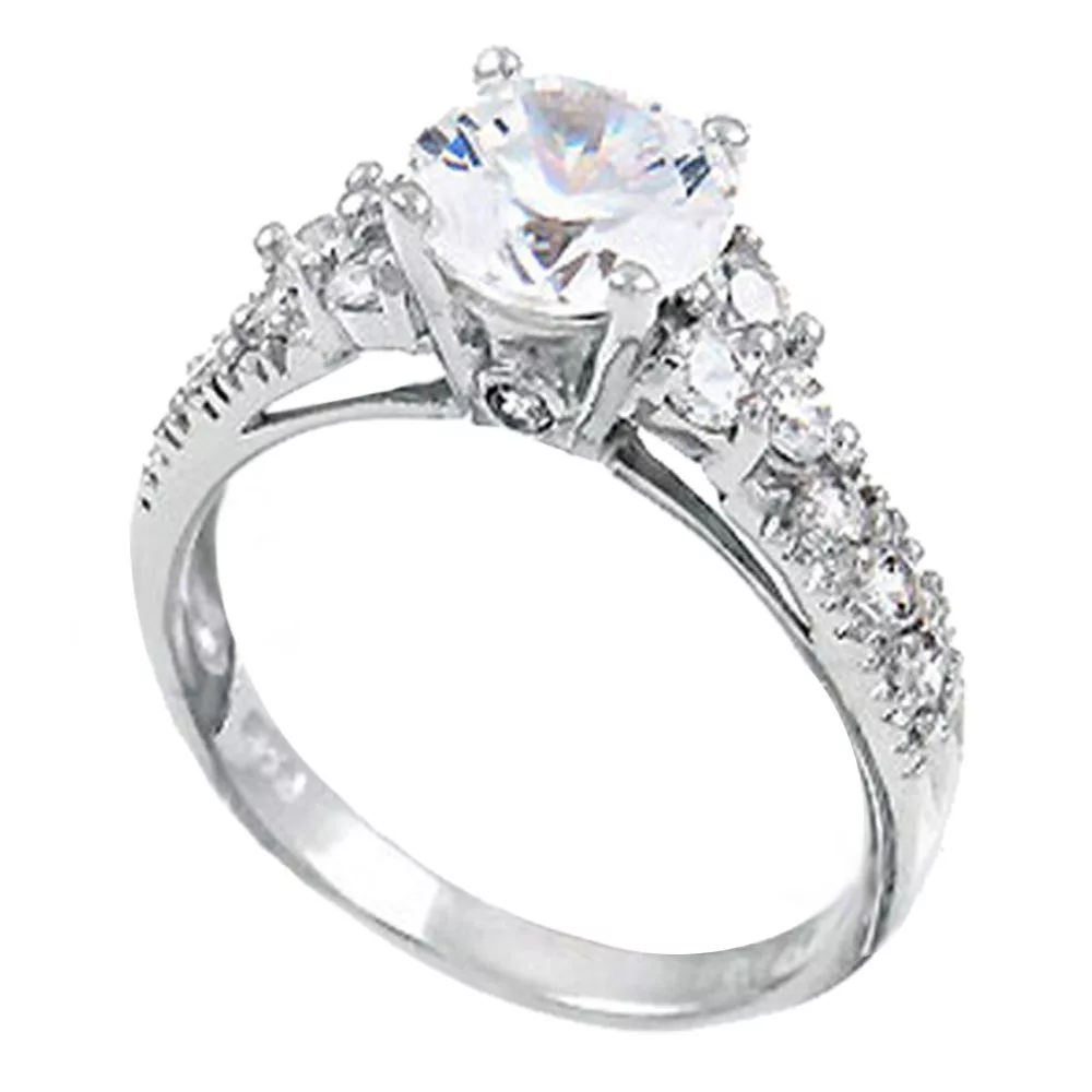 This beautiful Tri-level womens 925 sterling ring is the perfect gift for your loved one. The ring features a 1.28ct (7mm) round cut center stone that will glisten in the light and twinkle with every move your loved one makes. The ring has 12 accent stones that sparkle beautifully, and complement the center stone brilliantly. This is a great choice for an engagement ring or a perfect gift for your loved one.