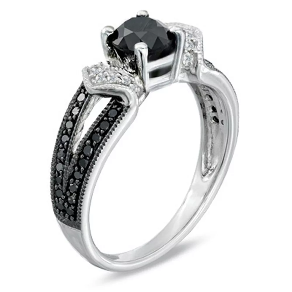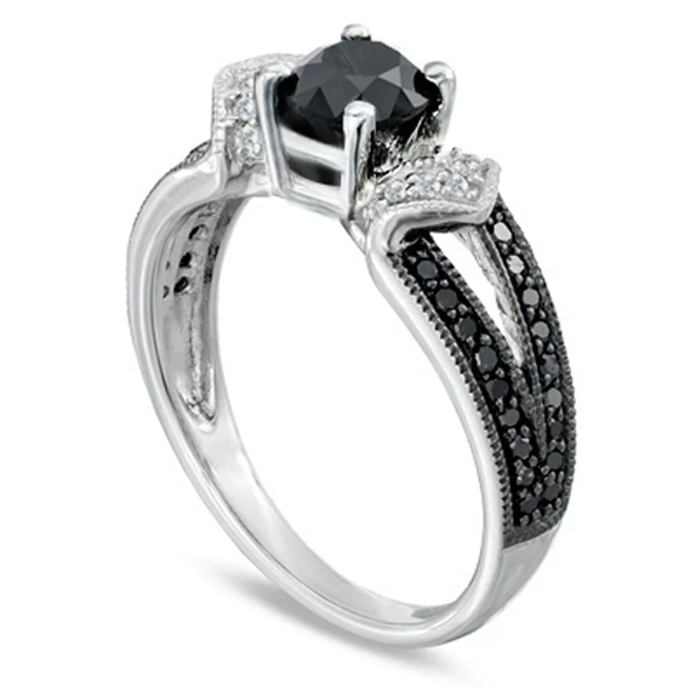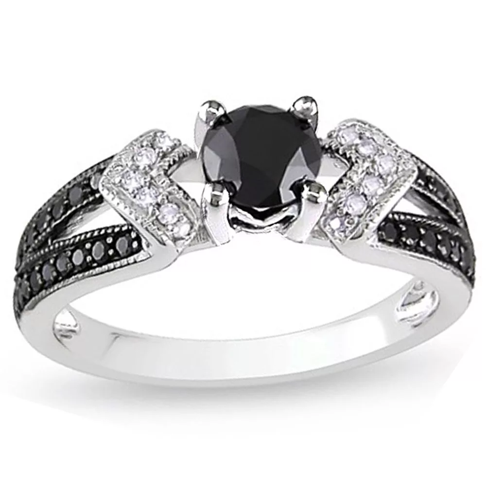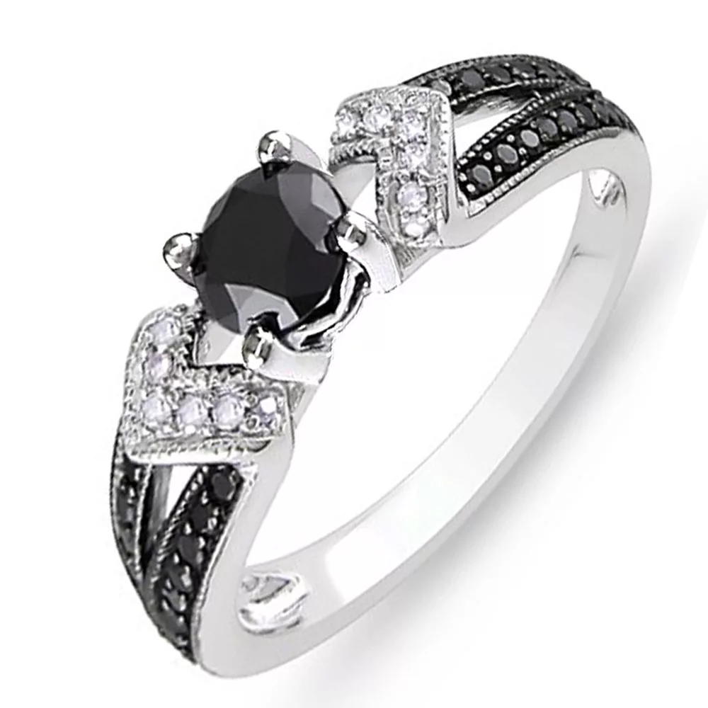 This one-of-a-kind ring looks as much like a beautiful work of art as it does a ring. A single, black stone sits at the center of the ring with pave accent stones that add just the right amount of sparkle to this stunning piece. The band is tapered toward the back giving the ring a sleek and elegant look that will leave you spellbound.