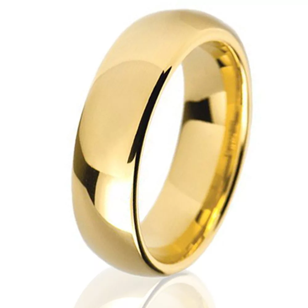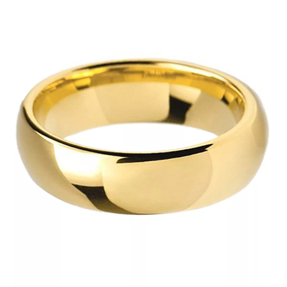 Titanium Gold IP Polished Dome Wedding Band Comfort Fit Mens Womens 6mm Promise Ring